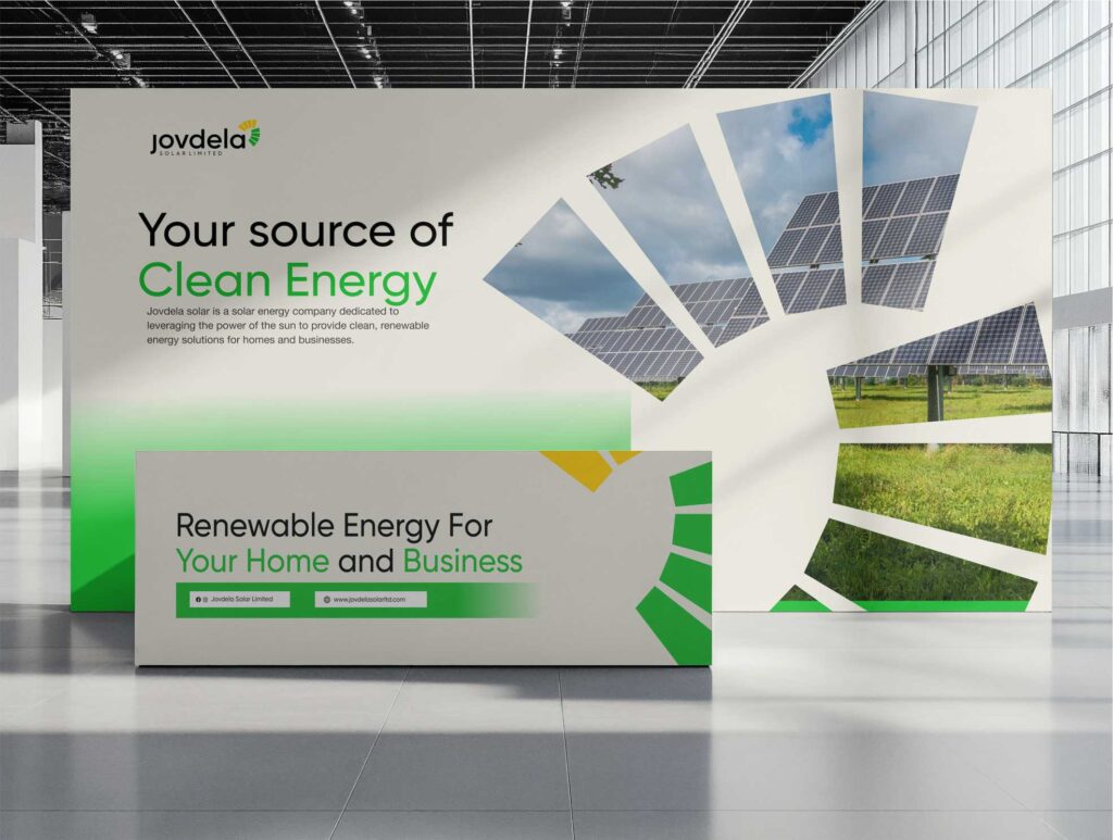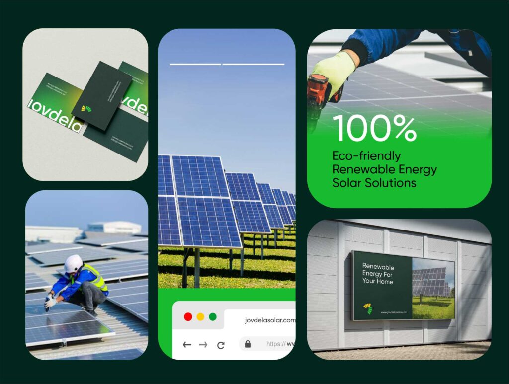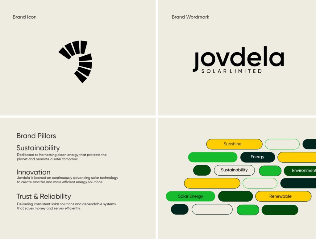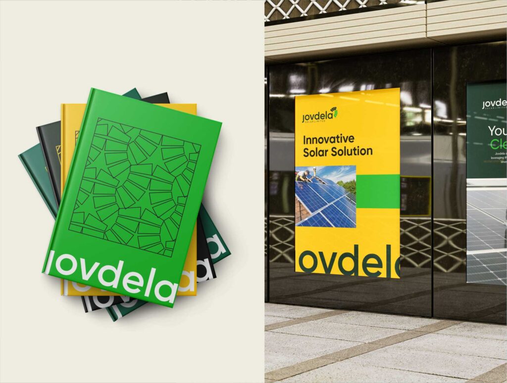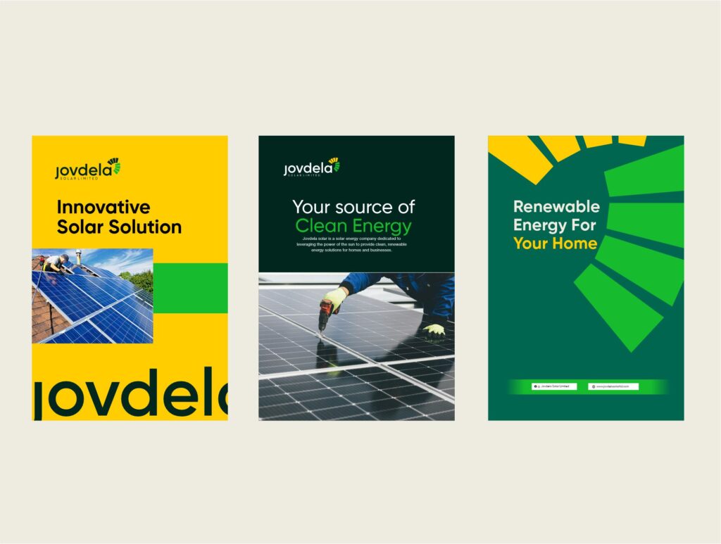 Jovdela as an innovative, solar energy company. Lastly, the bold yellow scheme adds a touch of warmth and optimism reflecting the positive impact the sun brings and the impact of solar energy on the environment and society